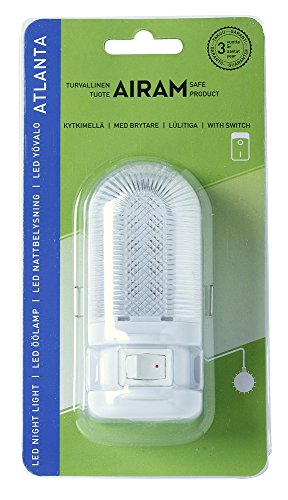 Airam Atlanta Luce Notturna con Interruttore 1 W, Bianco, 105 x 47 x 80 mm