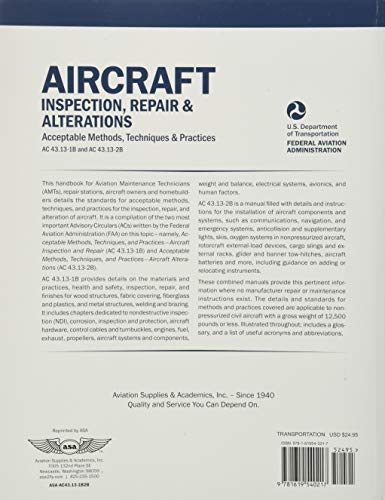 Aircraft Inspection, Repair & Alterations: Acceptable Methods, Techniques, and Practices - Aircraft Inspection and Repair: AC 43.13-1B Change 1: ... & Practices (FAA AC 43.13-1B and 43.13-2B)