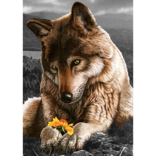 AIRDEA Lupo Diamond Painting Kit Completo per Adulti,Fai da Te Pittura Diamante Kit per Bambini,Kit per l'arte del Diamante Rotondo,Pittura Diamante Animale per Casa Decorazioni 11.8X15.7 inch