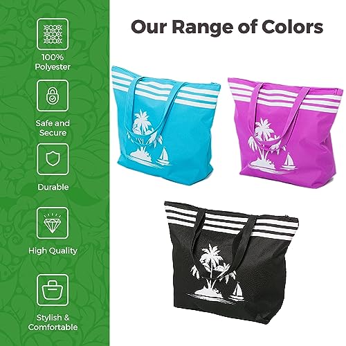 AIREE FAIREE Borsa Mare Borsa Mare Donna Grande Nero con zip e motivo albero di palma - Borsa Mare Grande - Borsa Spiaggia Donna - Borsa Da Mare - Borsa Da Spiaggia donna - Borsa Spiaggia Grande