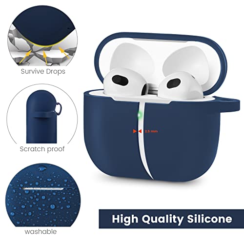 AirPods 3 Case Custodia Silicone 2021 Terza Generazione Cover,Protettiva Case con Gancio Portachiavi, LED anteriore visibile, supporta la ricarica wireless (Blu notte)
