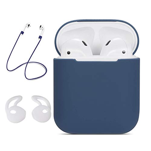 AirPods Case Protective 3 in 1, GeekerChip Silicone Skin Custodia with cinturino anti-smarrimento e Gancio orecchio Accessori Kit for AirPods(Blu)