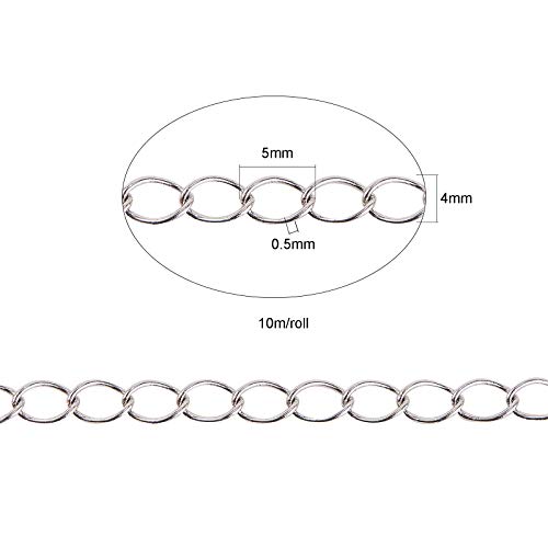 Airssory Catene a maglia barbazzale, 10 m, saldate con bobina di forma ovale, color platino, per la creazione di gioielli, 5 x 4 mm