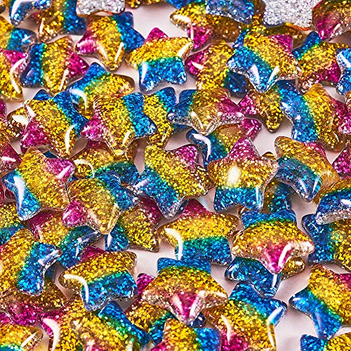 Airssory 200 ciondoli cabochon con bottoni in resina arcobaleno senza foro con retro piatto con stella in polvere glitterata, senza buco, fai da te, per decorazioni artistiche, 16 x 16 mm
