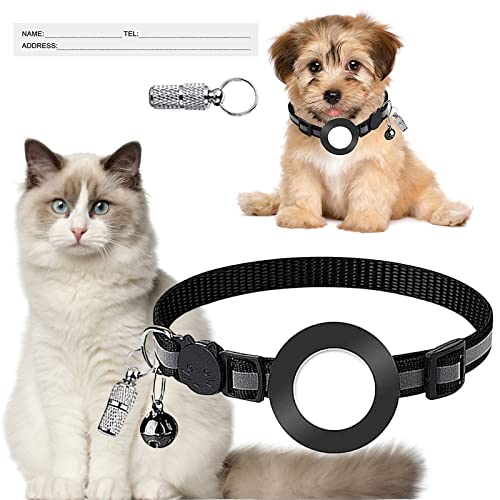 AirTag Collare per gatti HENGBIRD Breakaway regolabile per Airtag, supporto 3 in 1 con campana, nastro riflettente e nome dell'identità animale domestico/indirizzo/TEL per gatti e cani