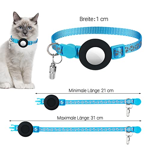 Airtag - Collare per gatti Homgaty, 2 pezzi, collare per gatti con campana e chiusura di sicurezza, collare riflettente per gatti con supporto impermeabile per airtag, regolabile 21-31 cm (blu)