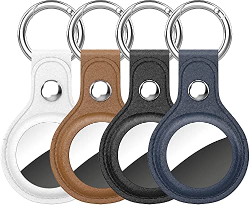 AirTag - Portachiavi per AirTag (2021), Apple Airtag portachiavi Bluetooth Tracker localizzatore Airtag in pelle portatile, ciondolo compatibile con Airtag Cane Collar, bianco marrone, nero blu