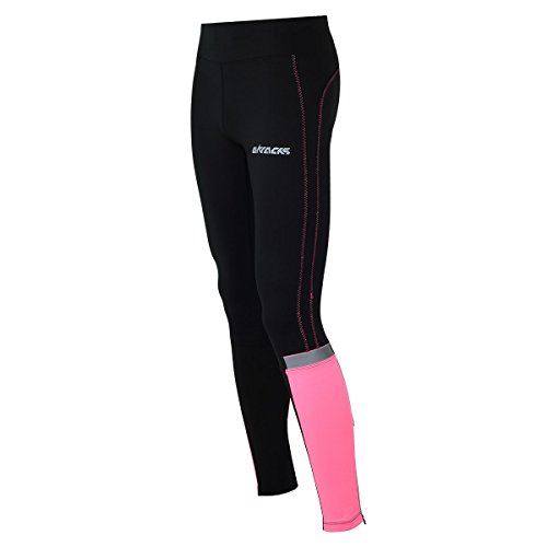 Airtracks, pantaloni da corsa da donna, a compressione, traspiranti, riflettenti, colore: rosa fluo, Donna, Pink, M
