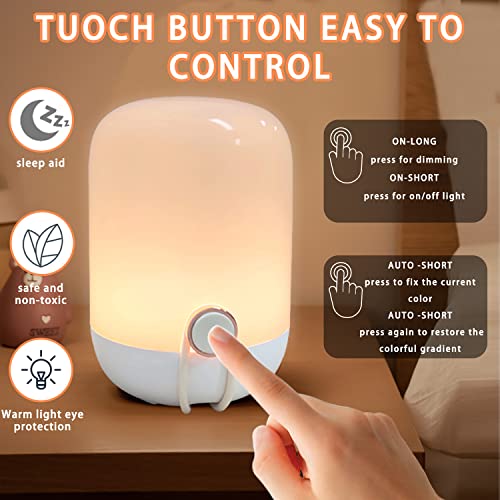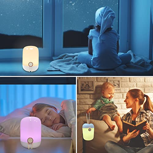 AIRUEEK Luce Notturna Bambini, Lampada da Comodino Ricaricabile, Lampada LED Touch Rgb Dimmerabile, Portatile lampada comodino Con Una Maniglia Per Baby Room Camera da Letto e Ufficio