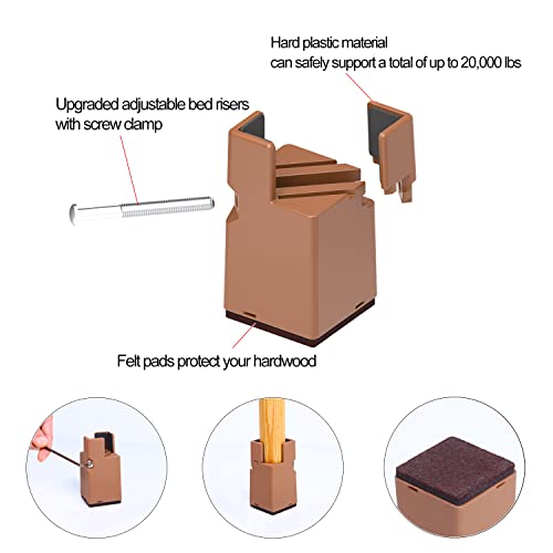 AIRUJIA Alzata Regolabile Premio con Morsetto a Vite, 8 Pezzi, Aggiungi Altezza di 5CM, Alzata Letto, Alzata Tavolo, Alzata Sedia, Si Adatta a Sedia Diametro della Gamba da 0.8 a 1.6 Pollici, Marrone