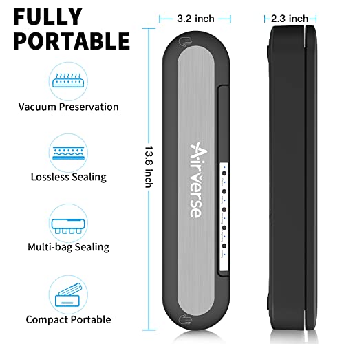 Airverse Sigillatore Macchina Sottovuoto per Alimenti Professionale Batteria da 2000mAh, Sigillatore sottovuoto per alimenti freschi sia secchi che umidi, 10 pezzi buste per aspirare inclusi