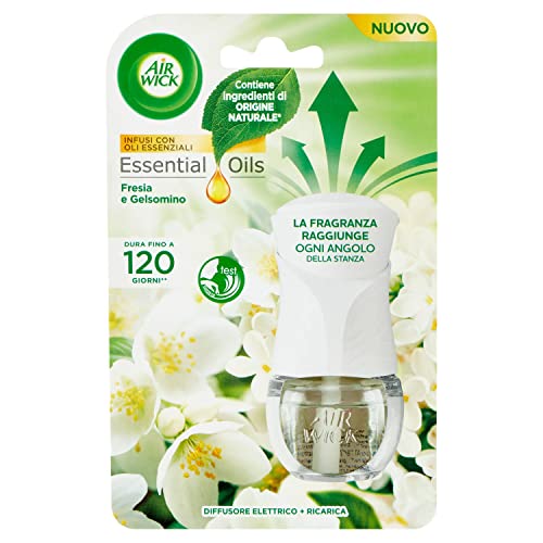 Airwick Diffusore Elettrico di Oli Essenziali, 1 Diffusore + Ricarica, Profumatore per ambienti, Fragranza Fresia e Gelsomino