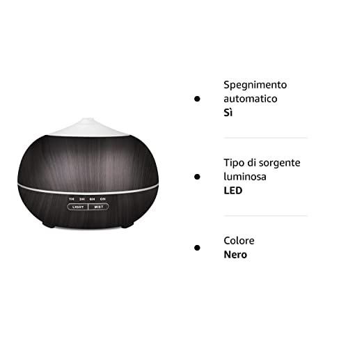 Airymium Diffusore di Oli Essenziali Ultrasuoni: 400ml Aromaterapia Diffusore Elettrico Diffusore di Aromi Umidificatore con 7 Luci Colorate 4 Impostazione Timer Silenzioso - Grano di legno nero