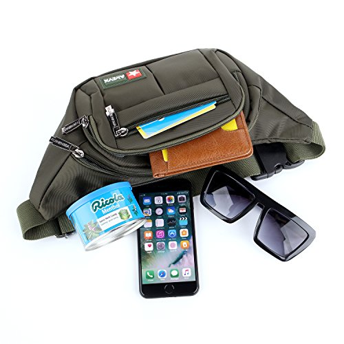 AirZyx Marsupio Sportivo, Running Outdoor Escursioni, Cintura Corsa Impermeabile con 4 Zip- Tracolla Regolabile per Ciclismo Escursione Campeggio (Oliva-Estendere)