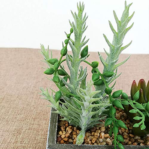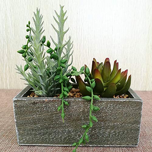 Aisamco Piante grasse finte Filo di Perle Piante succulente Artificiali Miste Piante in Legno Disposizione fioriera in Legno Vasi Quadrati in Legno rustici