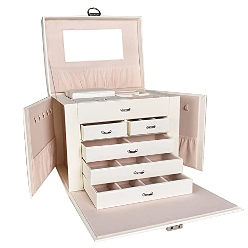 AISENPARTS Portagioielli esterno a 5 strati Organizer con serratura e specchio e custodia da viaggio portatile per anelli, bracciali, orecchini, collane, braccialetti Regalo per donne ragazze