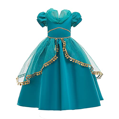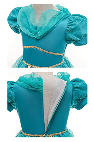 AISHANGYIDE Costume da Principessa Jasmine per Bambina Vestito da Aladdin con Parrucca Accessori Set Ragazze Principessa Compleanno Partito Abiti Natale Halloween Carnevale Cosplay Vestito Fantasia