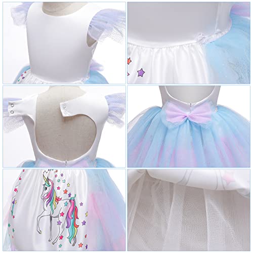 AISHANGYIDE Ragazza Vestito da Unicorno con Accessori Costume da Principessa Unicorno, Compleanno Partito Abiti Natale Halloween Carnevale Cosplay Vestito da Festa Fantasia