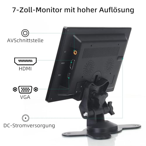 Alta risoluzione: questo piccolo monitor con risoluzione HD+ 1024 x 600, rapporto di contrasto dinamico 500:1, luminosità 250 cd/m2, rapporto d'aspetto 16:9 e ampi angoli di visione di 178 gradi dimostra una capacità di imaging super esclusiva. Alta sensibilità, risposta rapida, nessun sfarfallio e forte anti-interferenza. Display LCD TFT a colori, basso consumo energetico.