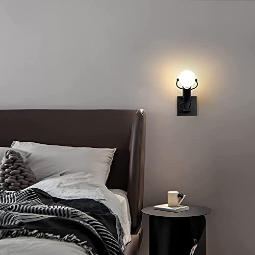 Aiskdan applique da parete interno, creativo umanoide applique camera da letto, E27 metallo Industriale Applique, applique per camera da letto, corridoio, camera dei bambini (lampadina non inclusa)