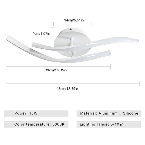 Aiskdan Plafoniera LED Soffitto, Lampada da Soffitto Curvo 18W 48cm, Plafoniera LED Moderna Luce Bianco Caldo 3000K per Camera da Letto, Cucina, Sala da Pranzo, Corridoio
