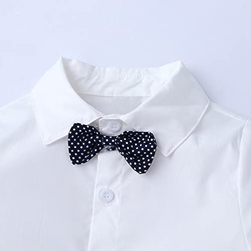 Aislor Abiti da Battesimo Neonato Bambino in Cotone Abito Smoking Cerimonia Nuziale Abiti da Sposa Matrimonio Festa Compleanno Camicia con Papillon + Gilet + Pantaloni A Grigio 3-4 Anni