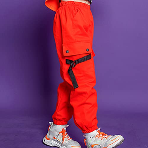 Aislor Cargo Pantaloni Lunghi da Hip Hop Ballo di Strada Ragazza Pantaloni Sportivi Jogging Corsa Ciclismo Pantaloni Larghi con Vita Elastica Bambine Pantaloni Tinta Unita A Arancione 5-6 Anni