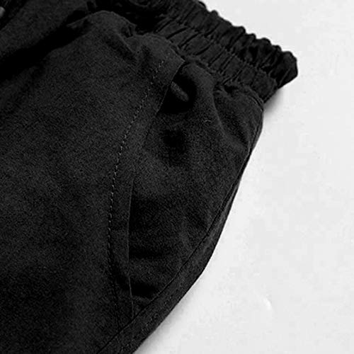 Aislor Cargo Pantaloni Lunghi in Cotone Bambina Pantalone Casual con Tasche Tinta Unita Ragazza Pantaloni Sportivi con Cintura Elastica Jogging Corsa Danza Strada Hip Hop Nero 5-6 Anni