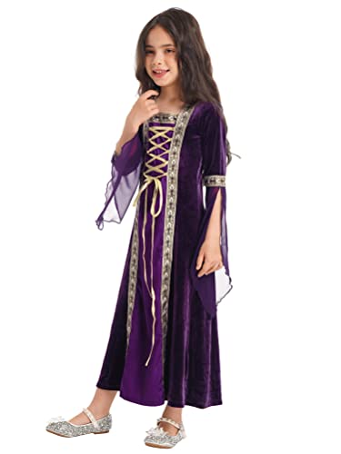 Aislor Costume Regina Malefica Halloween Carnevale Bambina Costume Grimilde Regina Strega Biancaneve Ragazza Vestito Palazzo a Maniche Lunghe Costume Operato Festa Cosplay Viola 3-4 anni