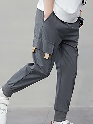 Aislor Pantaloni Cargo in Cotone Ragazzo Pantaloni Sportivi Ciclismo Corsa Jogging Allenamento Ragazzi Pantaloni Lunghi con Tasche Pantalone Tuta Hip Hop Ballo di Strada Grigio 5-6 Anni