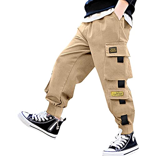 Aislor Pantaloni Sportivi Corsa Jogging Ciclismo Fitness Ragazzo Pantaloni Cargo Tinta Unita Pantaloni Lunghi Ballo di Strada Hip Hop Ragazzi Pantaloni Larghi Casual Khaki 2-3 Anni
