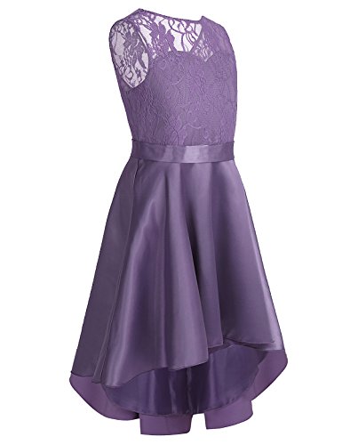 Aislor Vestito da Bambina Principessa Vestito da Cerimonia Nuziale Vestiti Comunione Senza Maniche Ragazze Abito Elegante Damigella d'Onore Abiti da Matrinonio Sposa Viola Scuro 14 Anni