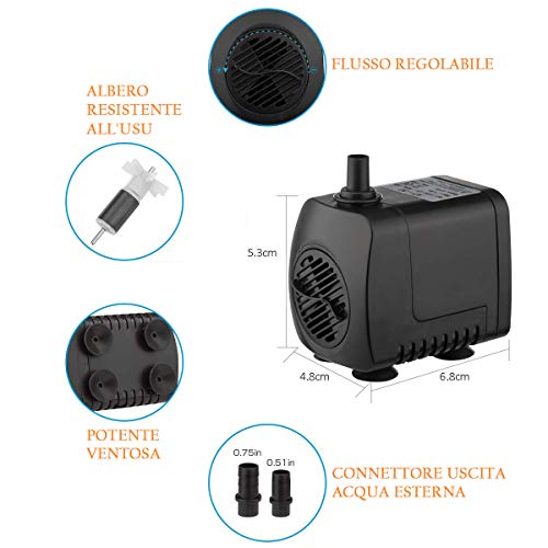【 AMPIA APPLICAZIONE】 Questa pompa sommersa è ideale per acquari, stagni, fontane per animali domestici, giardini acquatici, fontane d'acqua da tavolo e sistemi idroponici.