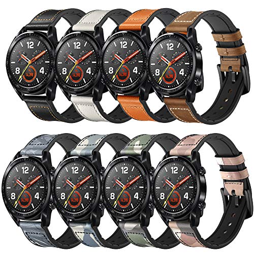 Materiale Premium e Design Unico - Il cinturino da polso compatibile con lo smartwatch da 22mm di larghezza e realizzato in pelle morbida e traspirante e materiale in silicone, che può prevenire irritazioni o allergie alla pelle e offrirti un'esperienza di utilizzo confortevole. Design mimetico alla moda fatto a mano e unico per personalizzare il tuo smartwatch e adattarsi al tuo umore, vestito nella vita quotidiana, vestire il tuo orologio ed evidenziare il tuo gusto unico.
