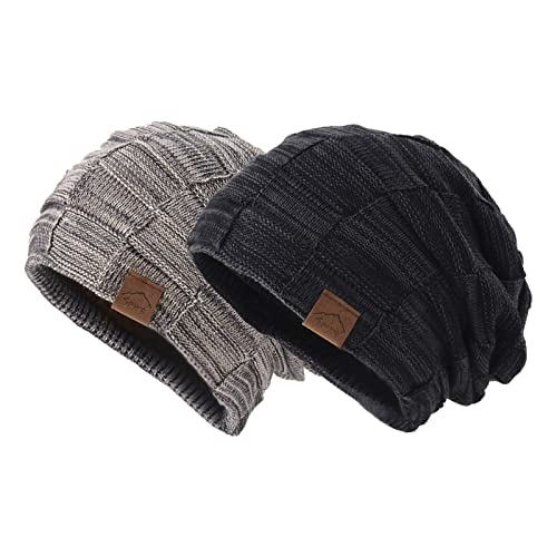 【2 Pezzi Berretti in Maglia】 Berretto morbido con fodera in pile per uomo e donna. Il perfetto cappello invernale in maglia calda, mantiene la testa e le orecchie calde nel freddo inverno.
