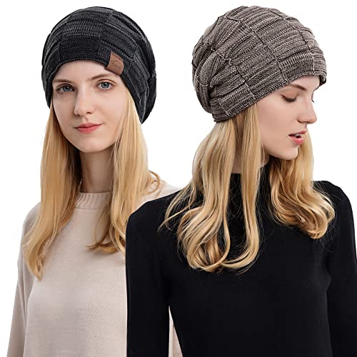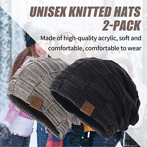 Aisprts Cappello Invernale Uomo Donna Berretto in Maglia Unisex, Beanie Hat Caldo con Fodera in Pile, Cappello per Coppia - Confezione da 2, T2 Nero + Cachi, Taglia Unica