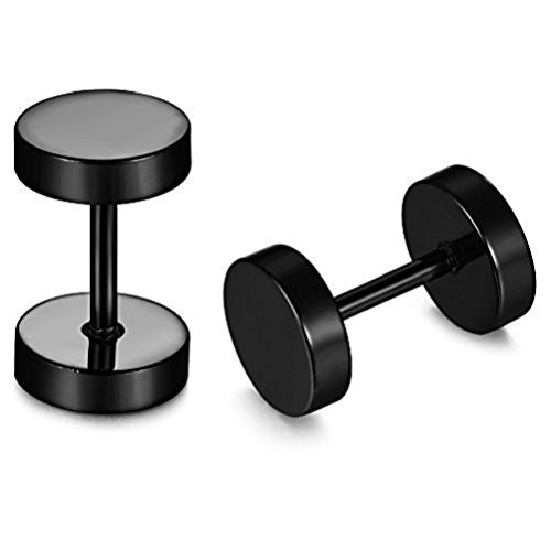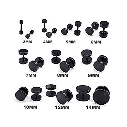 Aituo unisex forte 2pcs punk gotico di acciaio inossidabile round - mens bilanciere orecchio stalloni orecchini combinazione (Nero, 3mm+5mm+8mm, 3 pairs in total)
