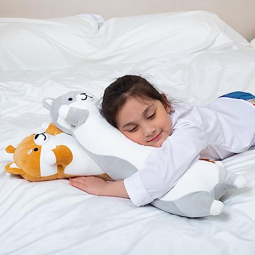 Aiuidun Lungo Shiba Inu peluche animale gigante Corgi cane morbido peluche cuscino morbido lungo cane peluche giocattolo coccole cuscino regali per ragazze ragazzi (90cm/35.4inch, Grey)