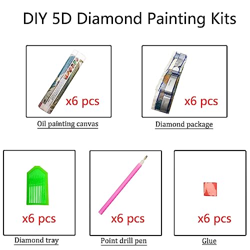 AIVORIUY 6 Pezzi 5D Diamond Painting Kit Completo, Pittura Diamante 5D, Pittura con Numeri Diamante, Dipinti Decorazioni per Pareti Domestiche, Passatempo per Adulti Bambini 30x40cm Luna
