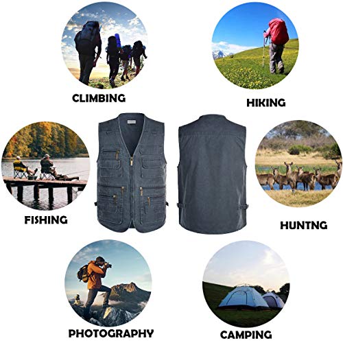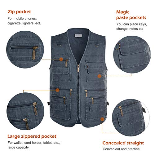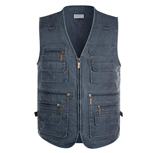 Aivtalk Uomo Gilet Multi-intascato Smanicato Giubbino con Cerniera Caccia e Pesca Giacche Maschile Outdoor Vest Blu - Manufacturer 3XL/ Taglia Europea 48-50