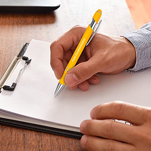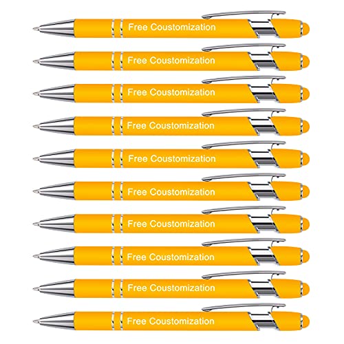 AIVYNA Penna a sfera con incisione e touch, con testo a scelta e logo, 10 pezzi (giallo)