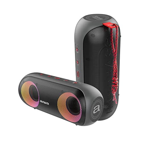 Aiwa BST-650: Altoparlante Bluetooth TWS compatto, durevole e potente con tecnologia HyperBass, (20W RMS, illuminazione LED RGB con 9 modalità, lettore di schede, resistente all'acqua). Colore: nero.