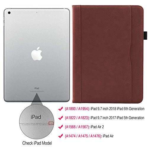 Aiwoxing Custodia per iPad 9.7 Pollici (6/5 Generazione 2018/2017) iPad Air 2 2014 / iPad Air 1 2013 Cover in Pelle PU Multi-Angolo con Tasca Auto Svegliati/Sonno Smart Apple Tablet Case, Marrone