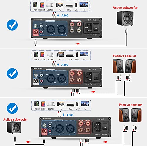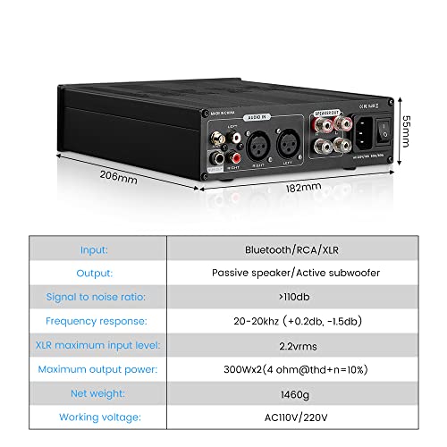 Ingressi audio digitali multipli: AUX (sbilanciamento), XLR (bilanciamento), Bluetooth, compatibile con la maggior parte dei dispositivi audio come telefoni, computer, tablet, TV, TV, lettori CD ecc.
