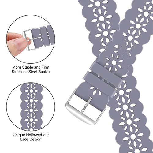 【Materiale in silicone premium】 Il cinturino AIYIRUO compatibile per il cinturino dell'orologio da donna è realizzato in silicone di alta qualità, il cinturino sottile in pizzo per le donne è molto morbido, confortevole, resistente, traspirante, impermeabile. La classica fibbia in acciaio inossidabile è molto stabile, non si preoccuperà che il tuo iwatch cada.