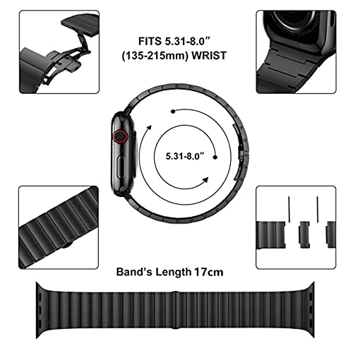 【Lunghezza regolabile】: il braccialetto Apple Watch in acciaio inossidabile si adatta a polsi da 144 mm a 220 mm. Peso: 208 g. È facile ridimensionare dividendo i collegamenti.
