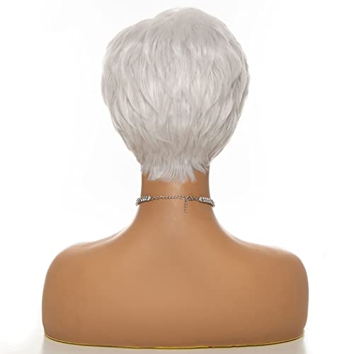 AIYLMZ Parrucche corte argentate bianche con frangia per donna Parrucche bianche eleganti e soffici a strati Parrucche naturali soffici resistenti al calore per mamma nonna nonna (Bianco)