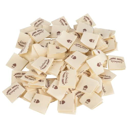 ☑ Handmade with Love: Riceverai 100 etichette in tessuto fatte a mano con la scritta "Handmade with ❤". Queste etichette per etichette in tessuto sono ideali per i tuoi capi fai-da-te, perfette per etichette in tessuto eleganti per abbigliamento, biancheria, artigianato, articoli fatti a mano e altro ancora.