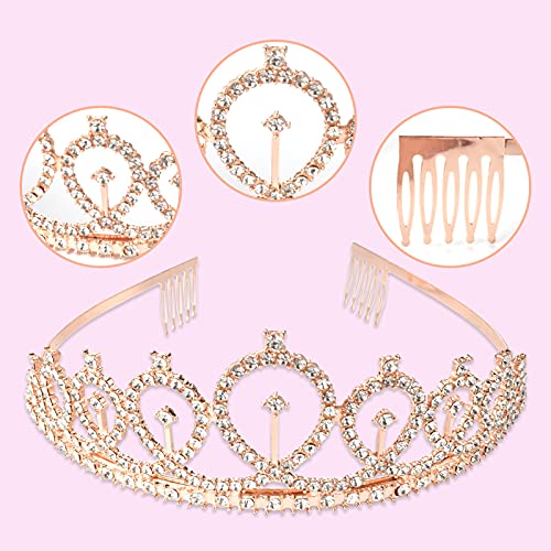【Birthday Crown Girl 】 Questa corona di compleanno in oro rosa progettata come una corona è realizzata in lega di alta qualità e decorata con strass scintillanti, che ti danno un senso di eleganza e femminilità e ti fanno distinguere dalla folla della festa per vincere più corone pettinando: i due pettini a ciascuna estremità della chioma aderiscono maggiormente ai capelli.