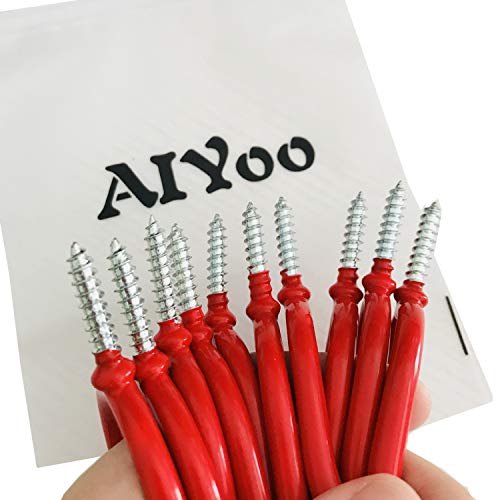 AIYoo - Ganci a vite per attrezzi da garage, set di ganci robusti per montaggio a parete, rivestiti in vinile, per attrezzi da giardino, pale, rastrelli, colore: rosso, confezione da 10
